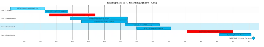 Llegar a la R1 del 30 de abril es totalmente viable si nos mantenemos estrictos con el alcance. No estamos construyendo la nevera del futuro completa hoy; estamos construyendo la base tecnológica que permitirá que exista.